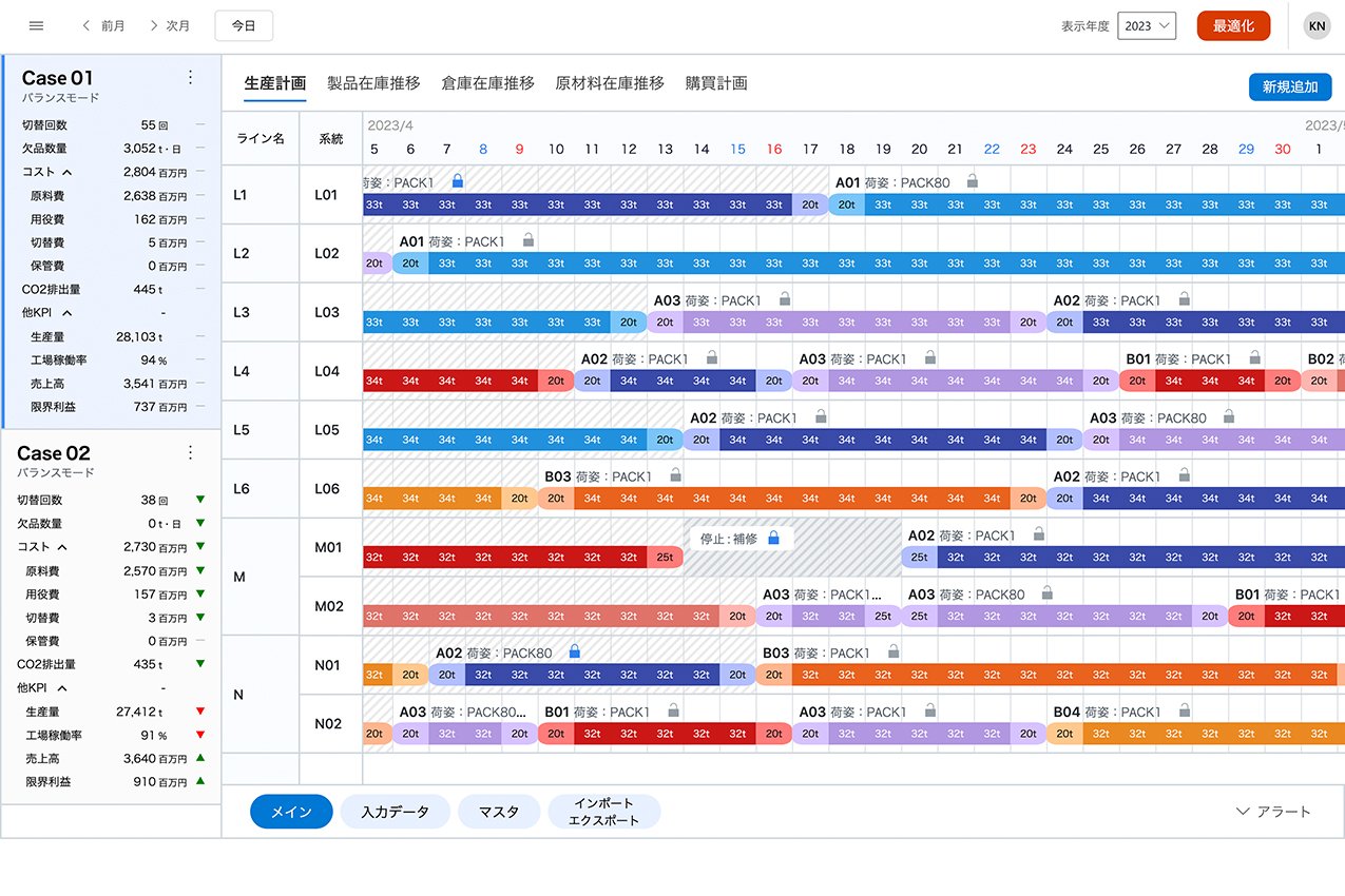 ──人の手では製品の欠品をなくすように組み直すだけで精一杯ですが、様々なコストやリスクなども含めて高度に全体最適された計画を即座に作ることができるわけですね。
