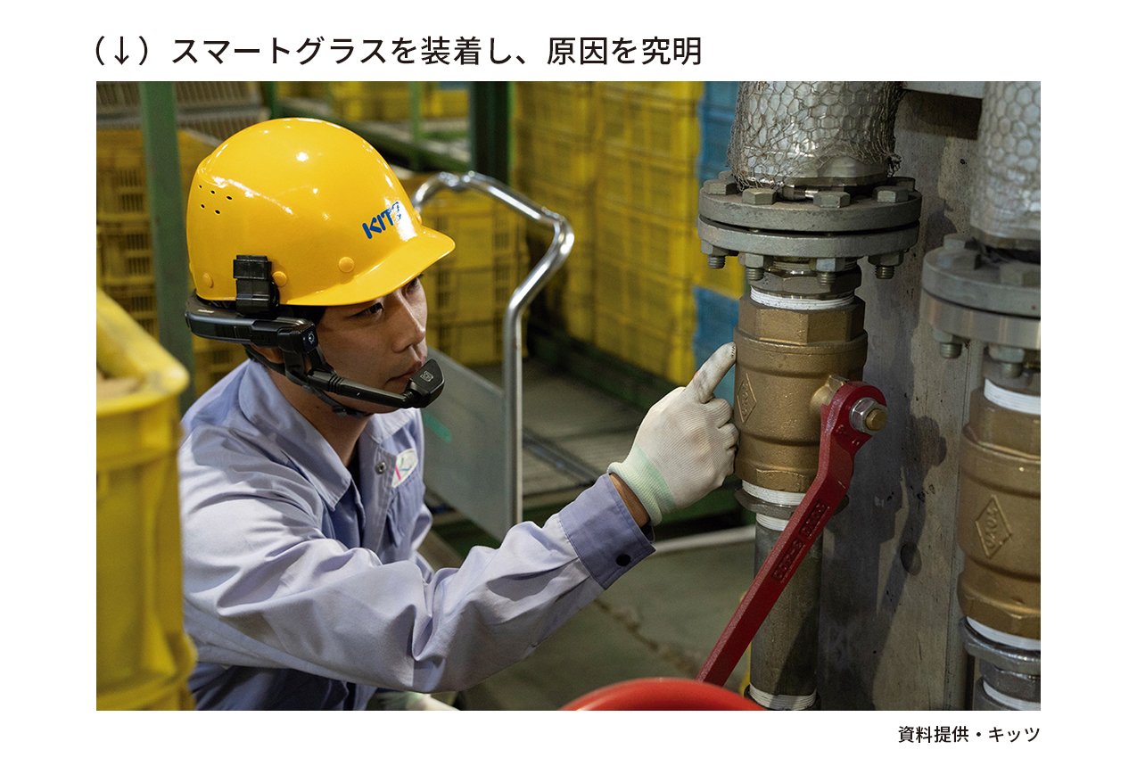 山﨑 これは、作業者がヘルメットにスマートグラスを装着することで、作業者目線の映像がリアルタイムでサポートチームに共有されるという仕組みです。複数人が現場の作業状況を見られるので、設計に携わる者や知見を持った関連部門の者が離れた場所にいながら、一緒に支援できるようになりました。